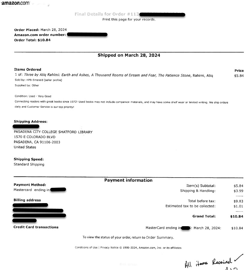 - When submitting invoices, please include either a packing slip or a signed statement on the invoice confirming that all items have been received or that services have been completed. For example: “All items received or services completed—approved for payment,” followed by your signature.
