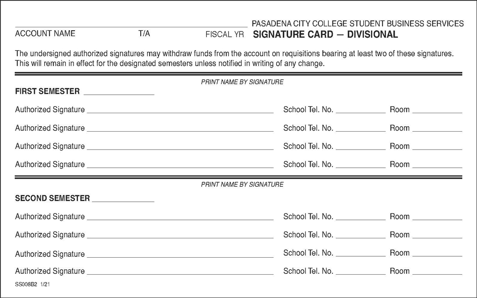 - Your signature card must be on file in our office before any expenditures are made from your account for the new fiscal year.
