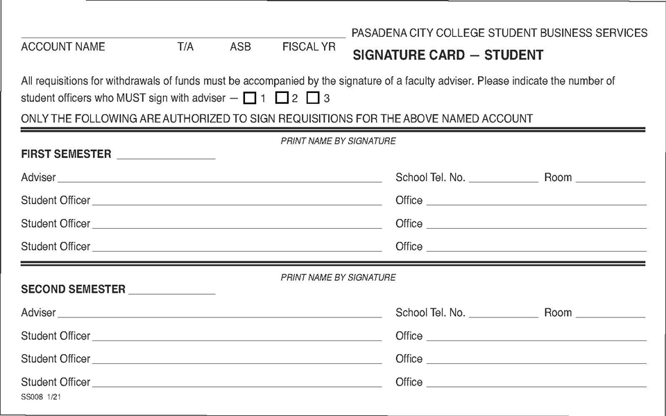 - Additional signatures are required for Student Trust & Agency and Associated Student accounts.